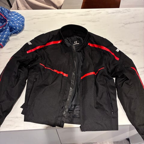 Motorcykel beskyttelsesjakke med rygskjold i sort. Jakken har hårde plastskaller ved skuldre, albuer, bryst og ryg for ekstra beskyttelse. Rygskjoldet er ledopdelt for bedre bevægelighed, og jakken lukkes med lynlås foran. Justerbare stropper ved talje og arme giver mulighed for tilpasning til kroppen. Meshmateriale mellem beskyttelsesfelterne giver ventilation under brug. Velegnet som beskyttelsesudstyr til motorcykel- eller lignende kørsel, hvor der ønskes ekstra kropsbeskyttelse.