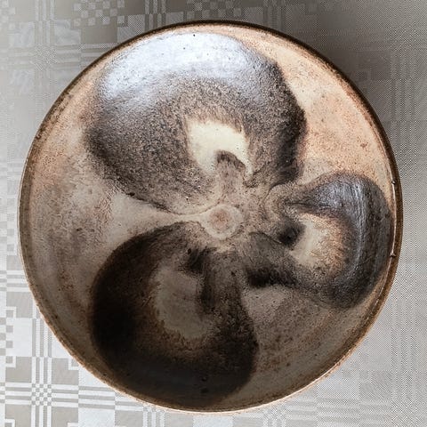 Pottemagerstuen keramisk skål i brun og sort glasur. Skålen har oval form med todelt glasur i mørk brun og sort adskilt af en lys stribe. Undersiden er uglaseret med stempel fra Pottemagerstuen. Velegnet som serveringsskål eller til dekoration i køkken eller stue.