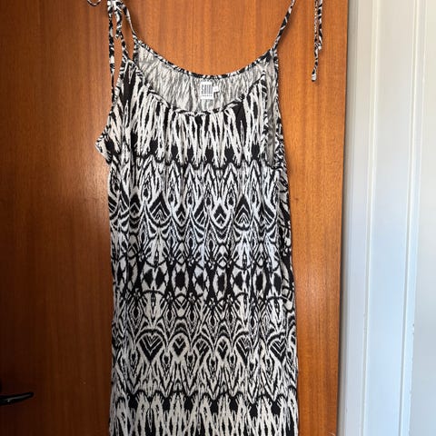 Saint Tropez hverdagskjole til kvinder i str. S. Kjolen er fremstillet i viskose og har et grønt bladmønster. Modellen har lange ærmer og slå-om-effekt foran med bindebånd i taljen. Velegnet som hverdagskjole.