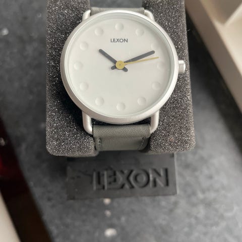 Xplora/LIGE armbåndsur med rund hvid urskive og gyldent urkasse. Uret har datoangivelse og klassisk analog visning med markeringer for timer og minutter. Remmen er i brun læder med spænde-lukning. Velegnet som hverdagsur eller til mere formelt brug.