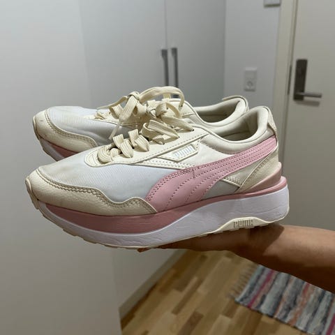 Puma løbesko i størrelse 40. Skoene er grønne med lyse kontrastdetaljer og hvid mellemsål. Overdelen er en kombination af tekstil og syntetiske materialer med snørelukning. Ydersålen er i gummi med mønster, der er egnet til løb og anden træning. Velegnet som løbesko eller til hverdagsbrug, hvor der ønskes en sportslig sko i str. 40.
