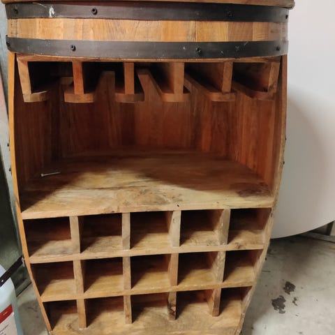 Tønde/Tøndebar/Vinreol/Bar gammel vintønde i egetræ.