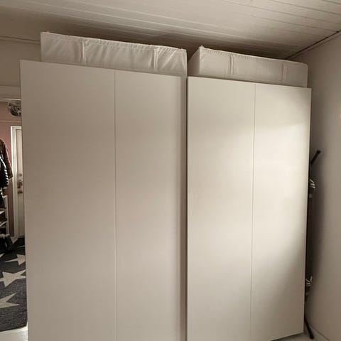 Ikea pax skab med Hasvik skydelåger, 9 netkurve, 2 hylder, 2 bøjlestænger.
