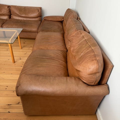 Sofen kan skilles ad, så puffen kan stå alene uden ryglæn. Puden medfølger.