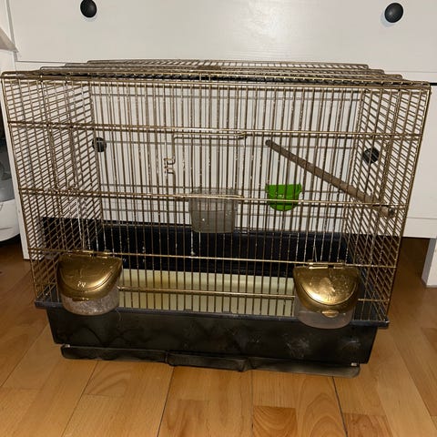 Har været glad for det, sælges fordi jeg har købt nyt. En ny kokusnød hule følger med da min undulat ikke gider den, så den har kun stået ovenpå den.