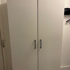 Hvidt skab i god stand. Det er vistnok fra IKEA men ikke helt sikkert. Det fungerer fint, og skal bare have en klud, så er det næsten som nyt. Har tilbragt det meste af sit liv i garagen
