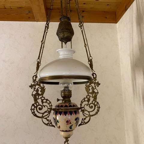 Dette er en meget charmerende og smuk lampe. Den kan køres op og ned i fatningen. Der kan også tilføjes en lampeskærm.