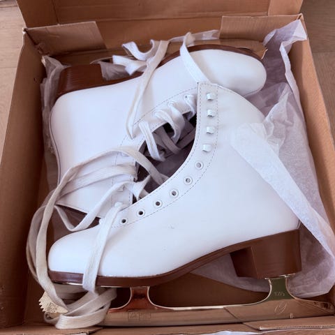 Alpine kunstskøjter, str. 41, hvide med hæl, skøjtebeskyttere.