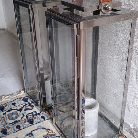 Her er 2 helt usædvanligt unikke og smukke lanterner, som du med garanti ikke finder i noget andet hjem! Disse er unikke, og helt specielle, da de blev fremstillet med henblik på at præsentere en rørlaserskære maskine på messe/udstilling Og derfor finder du ikke disse stående noget andet sted i verden.😊