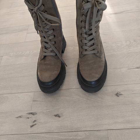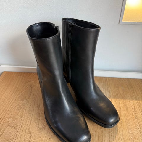 Gabor støvler i størrelse 36. Kort skaft med dekoration og små nitter omkring anklen. Sort overdel, høj hæl og lynlås i siden. Velegnet som hverdagssko eller til mere formelt brug i køligere vejr.