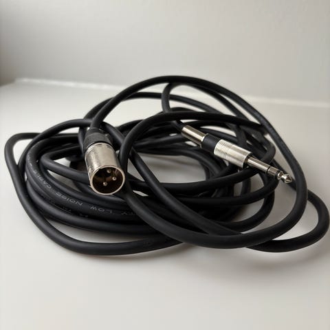 Jack til XLR hun audiokabel i sort. Kablet har jackstik i den ene ende og XLR-stik i den anden ende, velegnet til tilslutning af f.eks. mikrofoner eller lydudstyr til mixere, forstærkere eller andre lydkilder. Materiale er plast/metal med isoleret kabel og metalstik i begge ender.