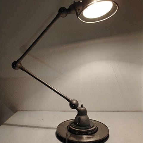 Sælger et sæt originale Jieldé industrilamper i rå metalfinish. Klassisk fransk industridesign.