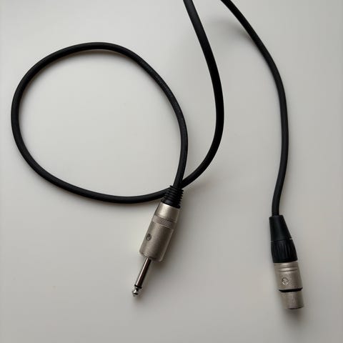 XLR han til jack kabel i sort. Kablet har XLR-stik i den ene ende og 6,3 mm jackstik i den anden ende. Velegnet til tilslutning af f.eks. mikrofon eller andet lydudstyr til mixer, forstærker eller lydkort, hvor der kræves XLR til jack forbindelse.