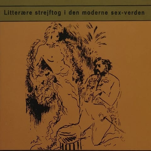Bog med erotisk illustration på omslaget. Teksten på forsiden angiver blandt andet "Fra den blodrige renæssance til den elegante Maupassant". Yderligere oplysninger om forfatter, titel, forlag, udgivelsesår, format og sprog fremgår ikke tydeligt af billedet og bør tilføjes, hvis de er kendt.
