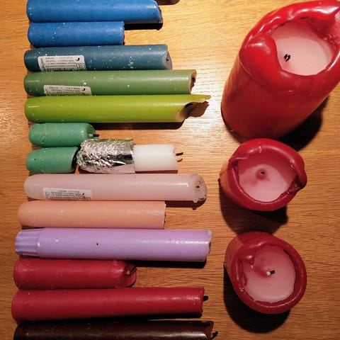 Vi brugte det til vores bryllup, vi havde 70 sæt ikea cylinderglas som vi fyldte med i alt 70kg pulver og der blev brugt/smeltet ca 5kg på hele dagen, resten kan bruges som nyt.
