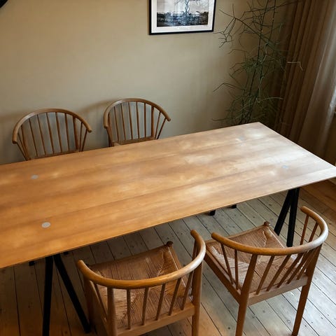 Skal hentes på første sal på Nørrebro. Bordpladen kan tages af. Og så er det ikke så besværligt at flytte.