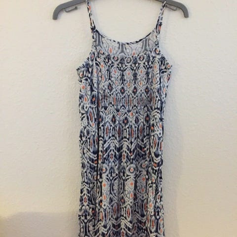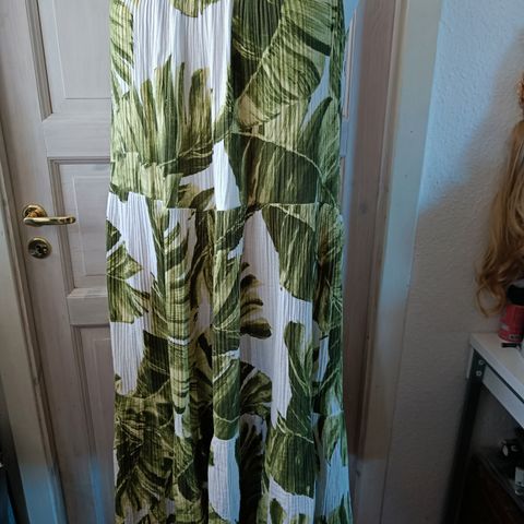 H&M kjole i chiffon til kvinder i str. XL. Kjolen er multifarvet med små blomsterprint og har lange ærmer. Stoffet er let og gennemsigtigt i chiffon med underkjole eller foer i kroppen (vurderet ud fra billederne). Taljen er markeret med elastik for en mere figursyet pasform, og nederdelen har let rynket/lagdelt effekt. Velegnet som hverdags- eller festkjole afhængigt af styling.