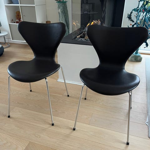 Fuldstændig som ny 7er stol med Classic sort læder type 3207. Kvittering haves (se billede)