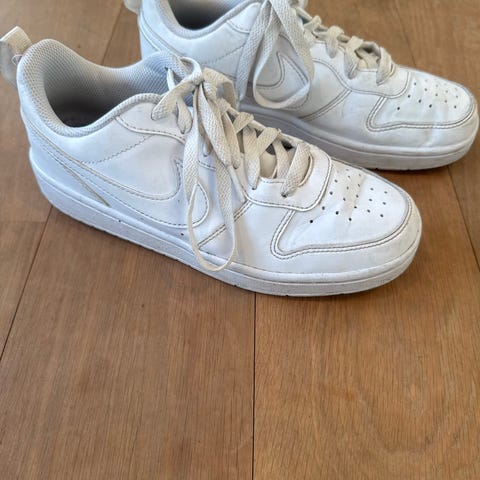 Nike sneakers til børn, unisex model. Skoene er sorte med snørelukning og gummisål. Klassisk lav sneaker med Nike-logo på siderne. Velegnet til hverdagsbrug for både drenge og piger.