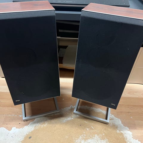 Stoffet foran intakt på begge højtalere, ingen huller.