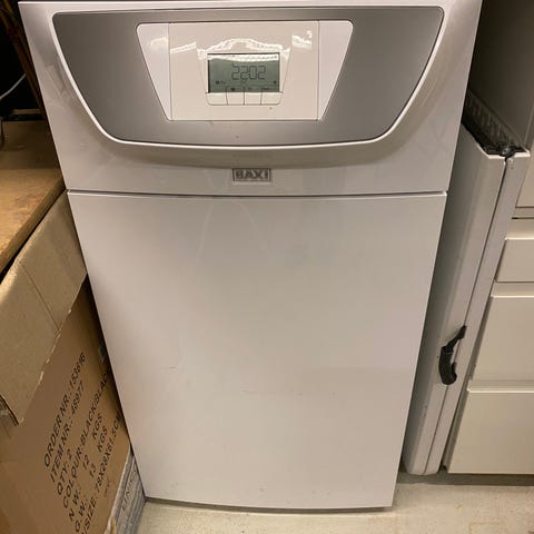 Varmepumpen står uudpakket på palle (se billede) og vejer 78 kg + 25 kg indedel