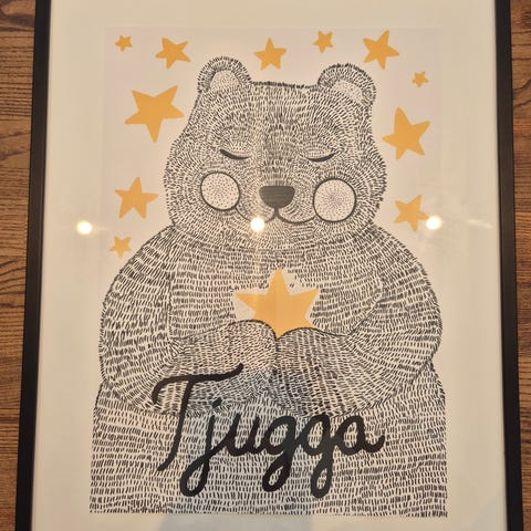 41,5 * 51,5 cm. Fint billede til børneværelset. Brugt men pæn stand. Fra hjem uden røg og dyr.