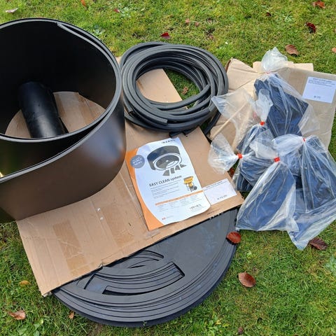 Har svingbar spandholder, som blot skubbes ind hvis der skal læsses i trillebør.