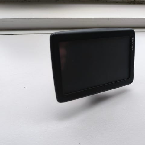 TomTom 4EN52 bil GPS med tilhørende sugekop-holder, strømkabel og hårdt etui. Enheden er beregnet til brug i bil til navigation. Opbevaringsetuiet beskytter GPS’en og tilbehøret under transport og når det ikke er i brug.