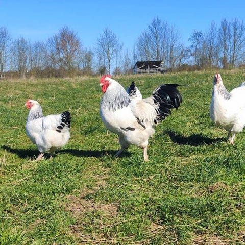 Cayuga hunner, 2 stk fra 2025, Cayuga er en utrolig smuk race der lægger meget mørke æg, særligt i starten. 250 kr pr stk.