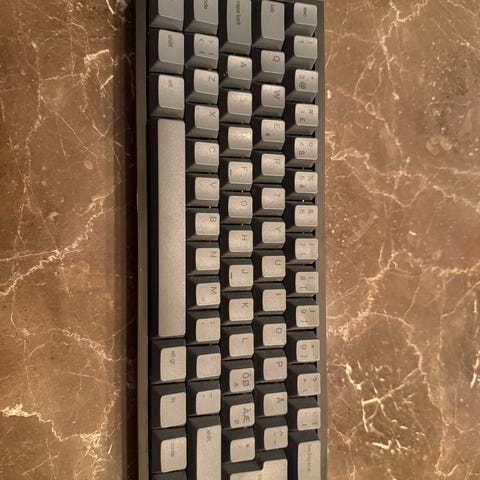 Har også originale stock keycaps til jet75 (black topographic), så koster det 100 kr mindre