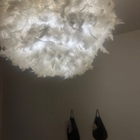 Flot stor fjer loftlampe i lyserød sælges da der ønskes nyt til teenage værelset