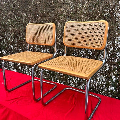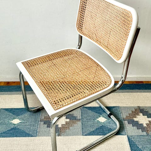 Udført på forkromede stålstel med fransk flet på sæde og ryg. Super klassisk design som har trendet flere gange siden de først blev tegnet.