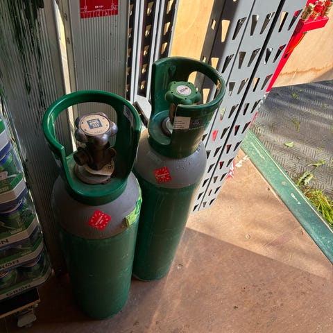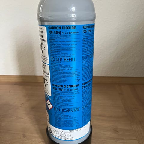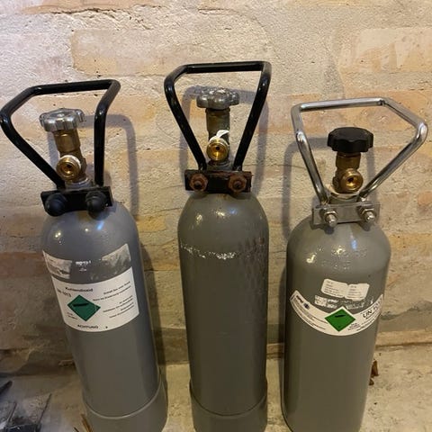 Tom Co2 flaske, højde 77 cm. Har muligvis været brugt til fadølsanlæg.