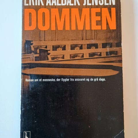 Dommen, Erik Aalbæk Jensen, genre: roman, - en roman om et menneske, der flygter fra ansvaret og de grå dage