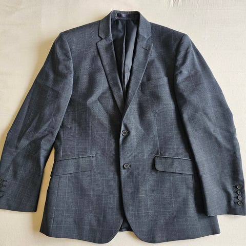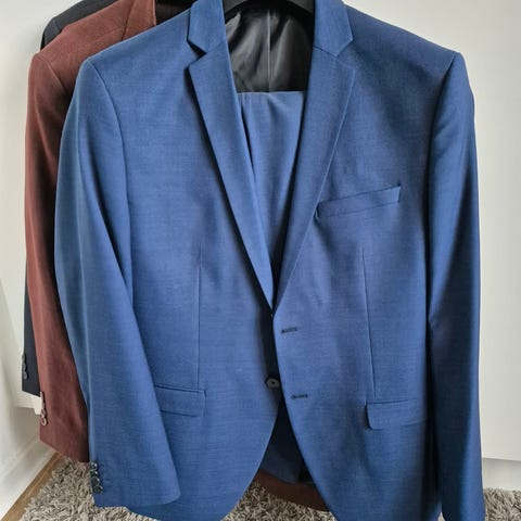 Karl Jackson jakkesæt til herre i str. 52 (EU), regular pasform. Sættet består af jakke og bukser i blå farve. Materialet er en blanding af 50 % uld og 50 % polyester. Jakken har to-knaps lukning, brystlomme samt forlommer, og indvendigt er der flere lommer. Egnet som klassisk jakkesæt til formelle lejligheder eller arbejde.
