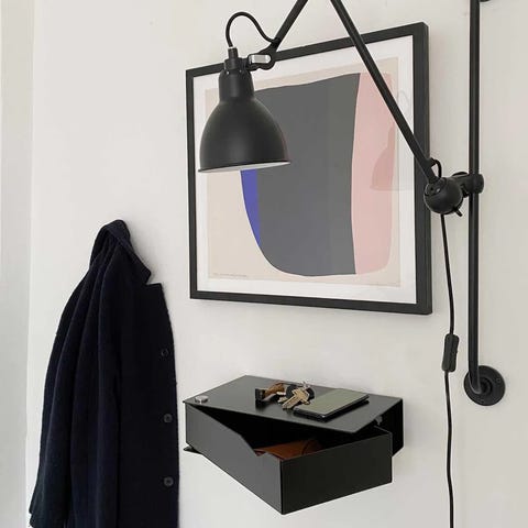 Væghængt natbord med skuffe og hylde, mørkegrå