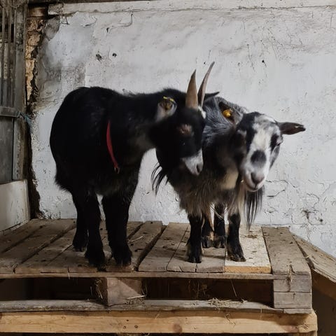 2 geder sælges. En kasseret han og en pige. De er begge 1 år gamle