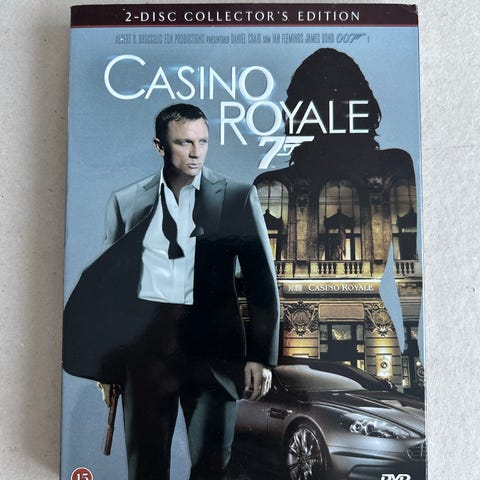Casino Royale dvd med James Bond-film. Standard dvd-udgave egnet til afspilning i dvd-afspiller, computer med dvd-drev eller lignende enheder, der understøtter dvd-formatet.