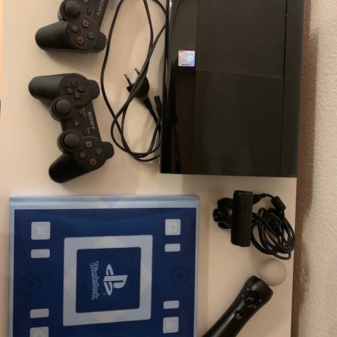 Sony Playstation 3 konsol i sort. Sælges med 2 controllere og 6 spil