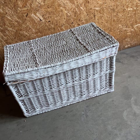 Pileflet kiste med håndtag og lukkestang.