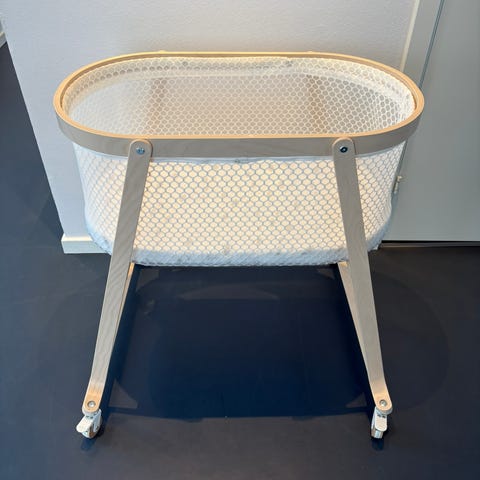 IKEA baby crib on wheels. Includes fitted sheet set of 2. Very little use.