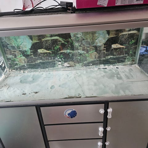 Vi bor i hus, og akvariet står tæt ved hoveddør, så det kan nemt bæres ud.