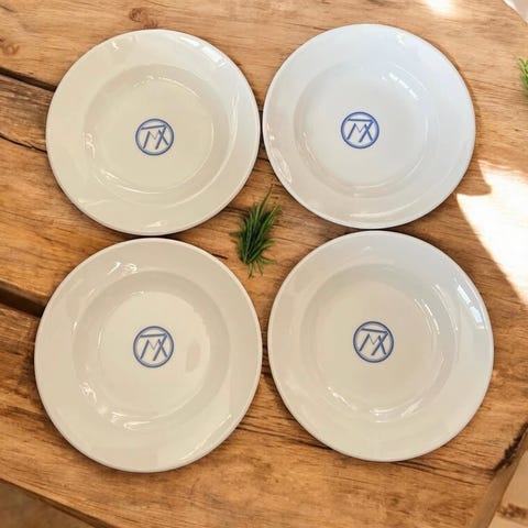 Logo på frokosttallerkner er lidt falmet. Se foto