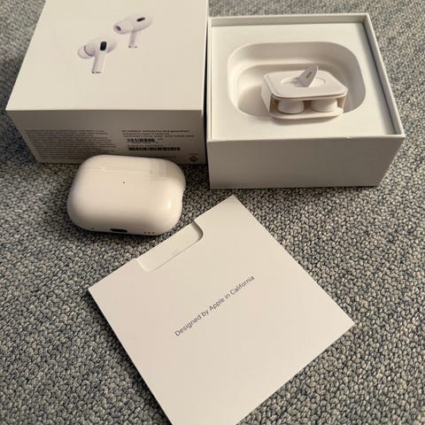 Apple AirPods Pro 2nd gen (2022). Uden etui (det er mistet), så brugt meget lidt. Kvittering haves (købt for 2299 kr.).