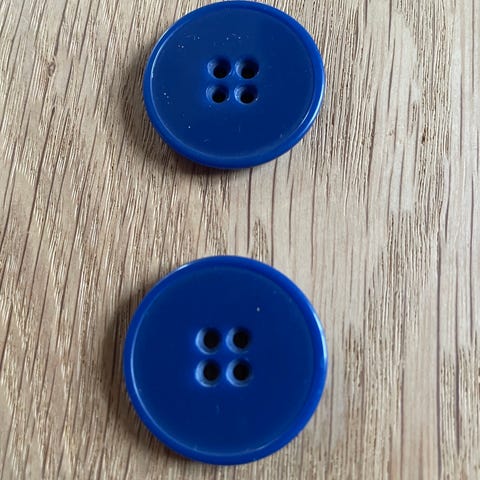 Runde gule knapper i plastik med to huller. Velegnede til syning og reparation af tøj, accessories eller hobbyprojekter. Knapperne har en glat, blank overflade og er små af størrelse, passende til for eksempel skjorter, børnetøj eller lette strikprojekter. Gul 1 cm i diameter
