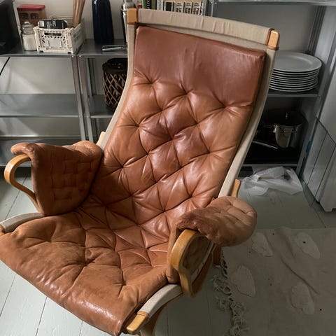 Sort Bruno Mathsson-inspireret stol i gjorde-flet.