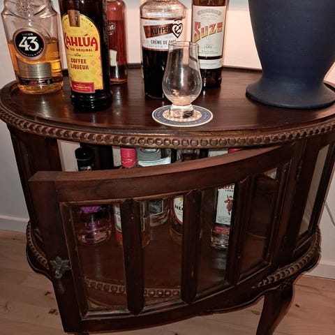 Lille glas/barskab med aftagelig bakke låge med hængsel