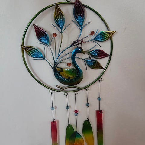 Stor vægdekoration/glasplade: Måler ca. 40 cm. Meget detaljeret med metalnet og changerende farver.