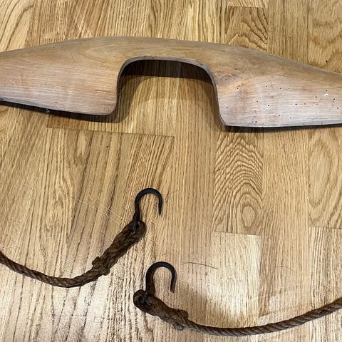 Antikt træåg & original Bismarck vægt – rustik dekoration / landstil