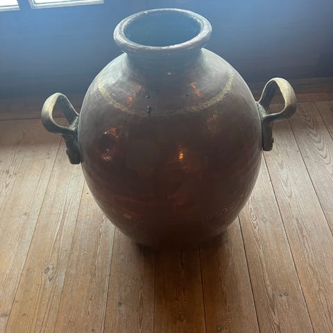 Antik indisk hammerslået vandkrukke af kobber